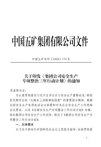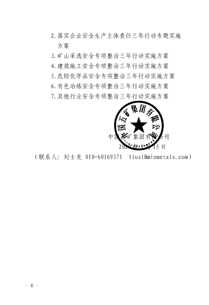 中国五矿安全生产专项整治三年行动计划
